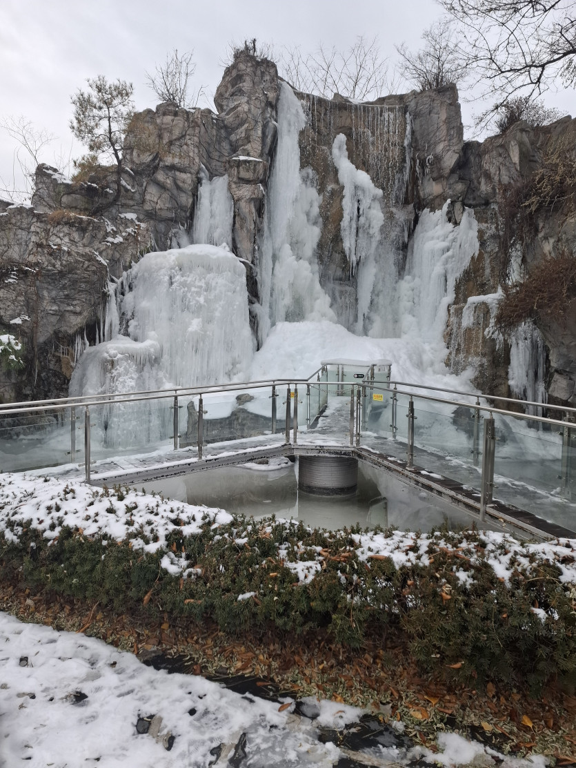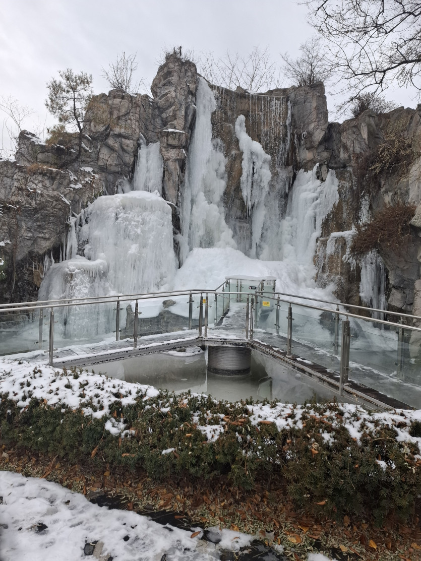 한겨울에 분수가 얼으니 엄청납니다.