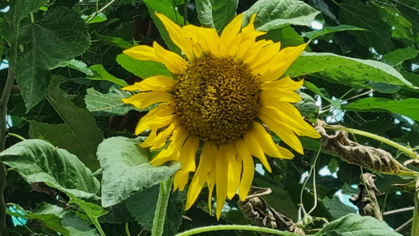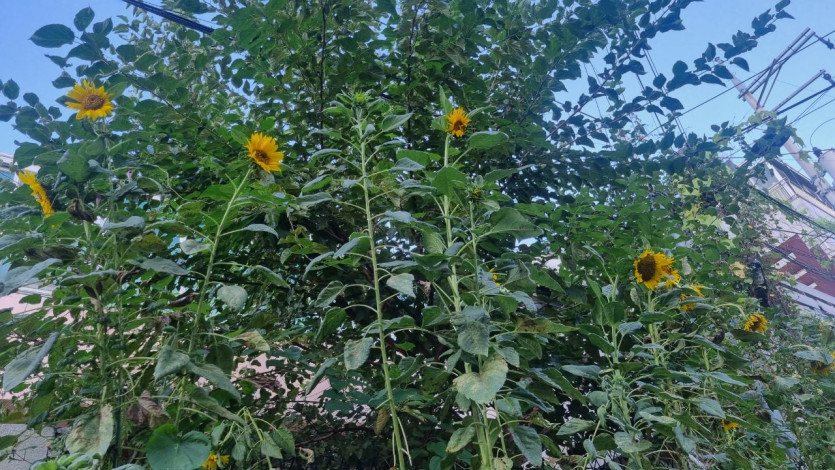 제가 봄부터 가꾸워 온 해바라기가 활짝 꽃을 피웠습니다.
