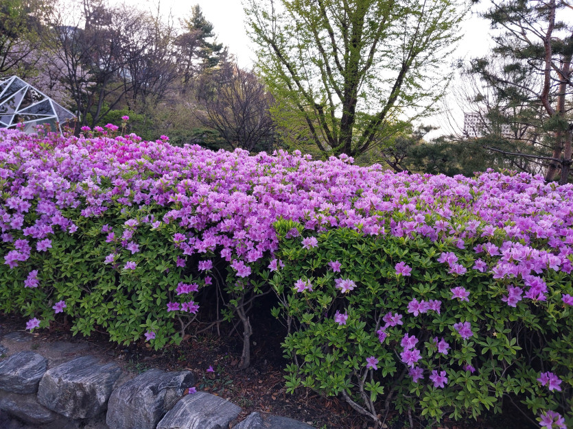 광장을 빛내주시는 철쭉의 자기세계 미락행 일불보살행과