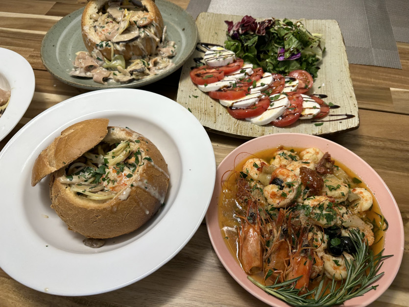 세가지 요리 빠네, 감바스, 카프레제 인데 맛도 신선하고 맛이