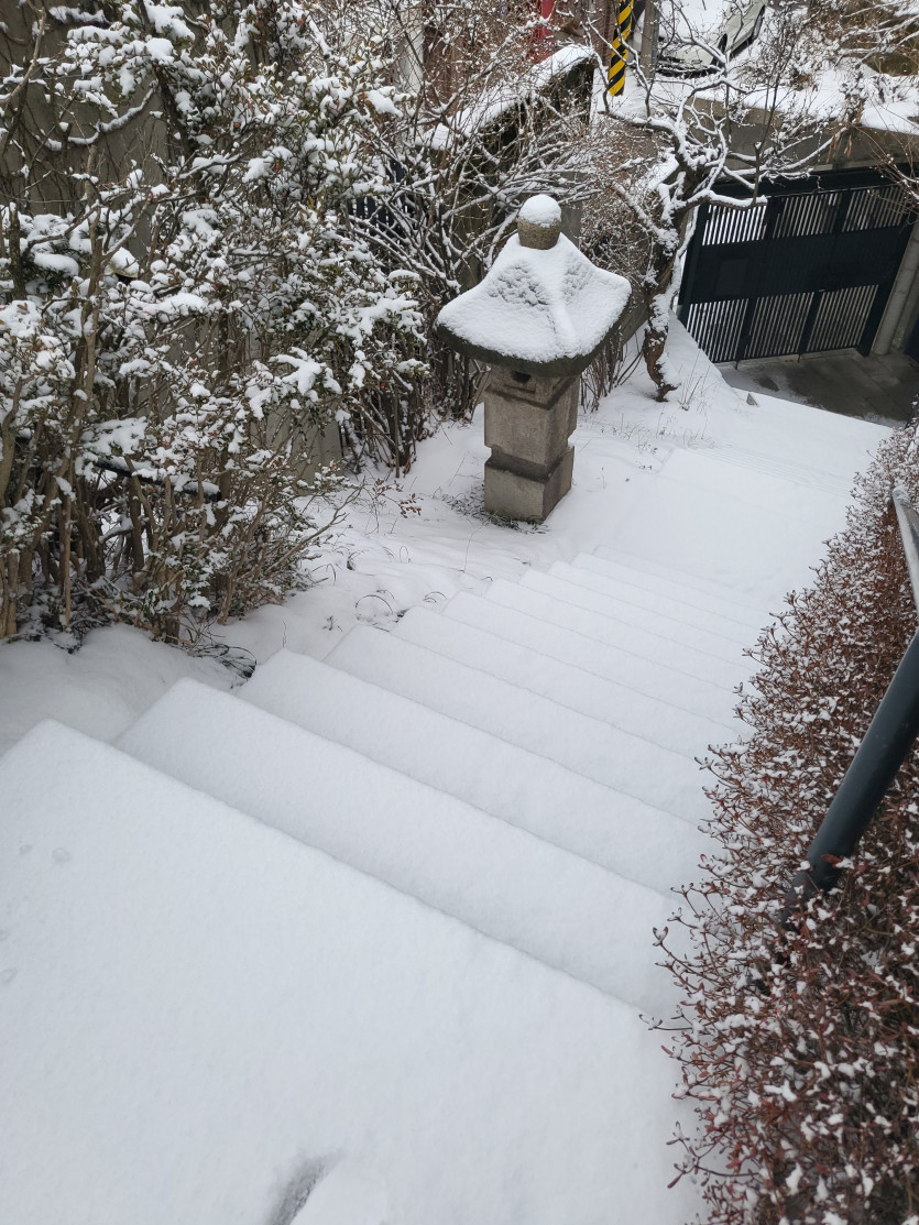 법은으로 내려주신 함박눈속에서 아름답고 숭고하게