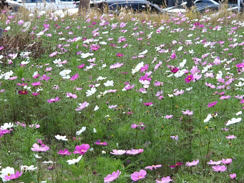 코스모스 꽃님께서 서울의 중심지인 인사동 근처에서 이렇게 아름답게 줄거움을 주시며 본인의 신의를 다하고 계시는 모습에