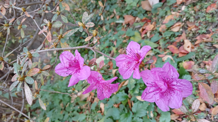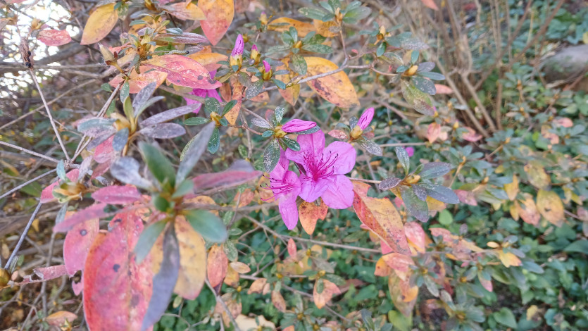 낙엽의 계절에 보기드문 철쭉꽃 관수행