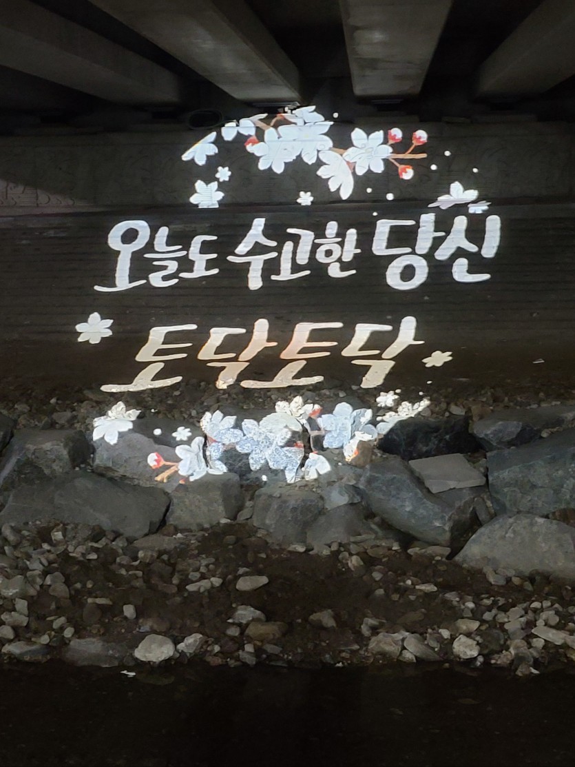 산책 길 중간 중간에 빛으로 만든 테마 글들을 보면서