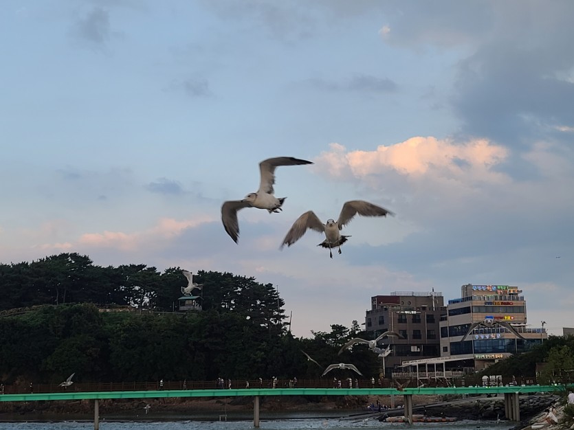 맛있는 공양을 마치고 궁평항 바닷가에 앉아 있는데 갈매기들이