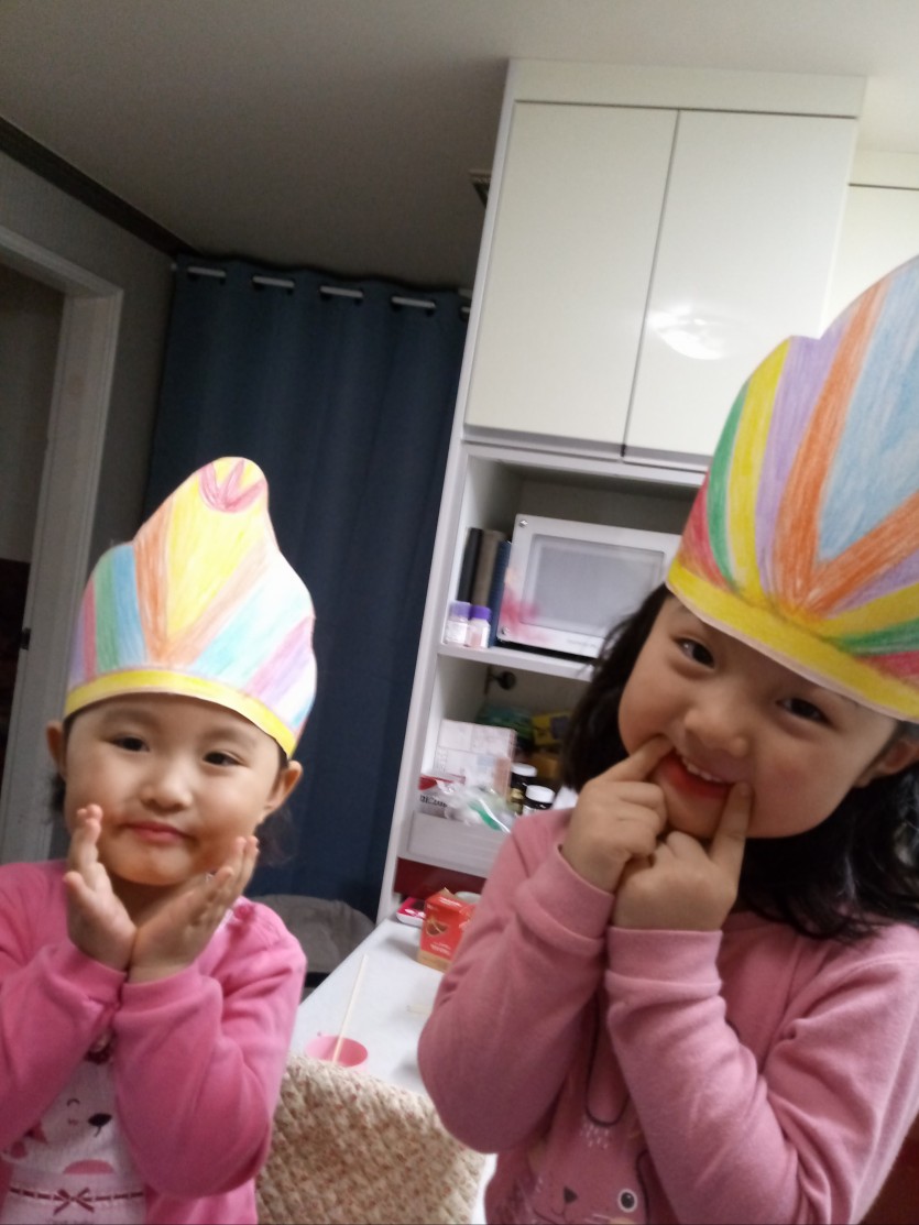 두손녀들과 공주놀이를 하기위해 왕관을 만들고 보자기를 허리에 묶어서 드레스를 표현하며 공주에 취해서있던 아이들과의 추억의사진입니다.