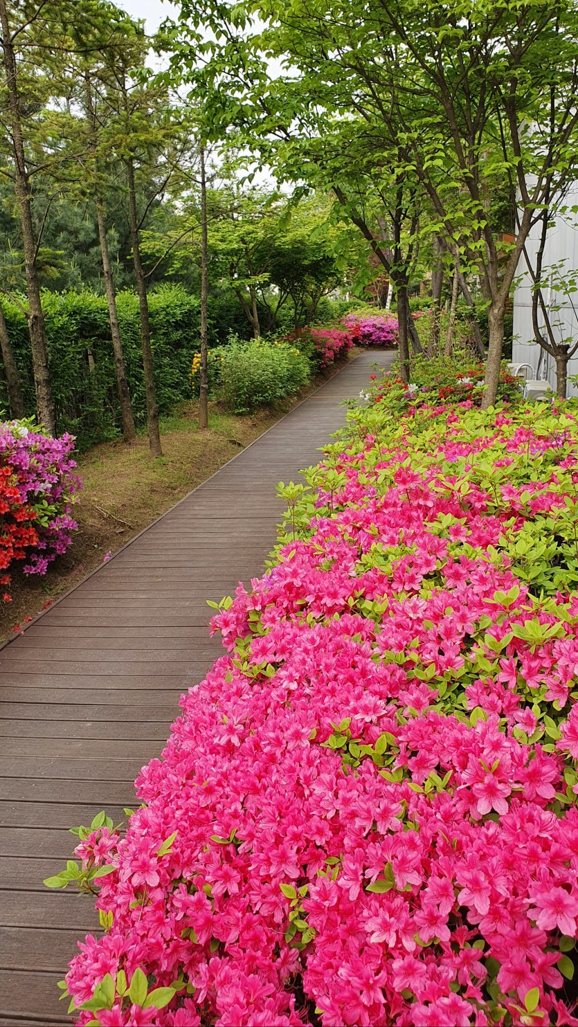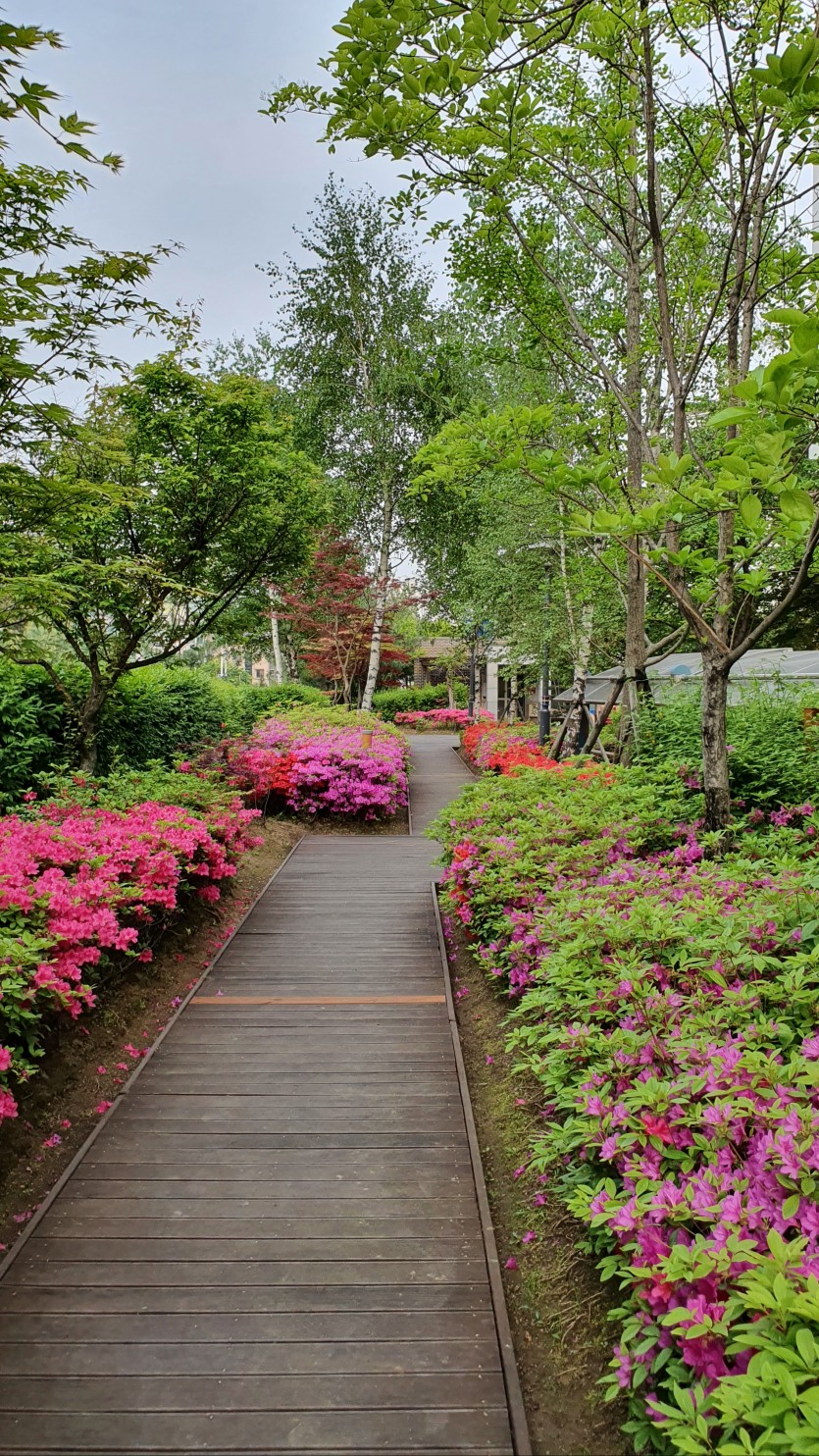 집으로 가는 새로운 길을 발견하였습니다. 보는 순간 가슴이 뛰고 환희로워 환호성을 질렀습니다. 비밀의 정원을 찾은 느낌이었습니다. 10년동안 다녔지만 이 길을 모르고 늘 다니는 길로만 다녔습니다. 어느날 살짝 돌아가 보니 이렇게 아름답게 조성된 꽃길이 있었습니다.