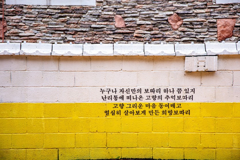 속초 벽화마을에 그려진 이산 가족의 고향에 대한 추억과 그리움을 대보 대련 대길로 삼아 희망의 보따리로 전변하여 에너지를 얻는 모습이 인상적이었습니다.