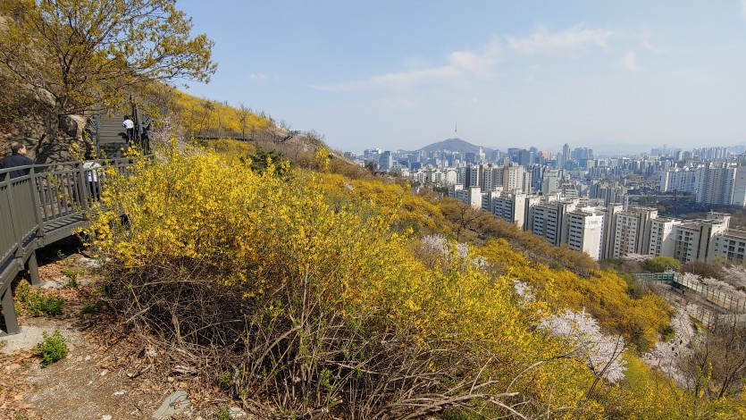며칠전 인왕산 자락의 개나리군락과 벗꽃이 만개한 곳을 다녀 왔습니다. 가까운 시내의 나즈막한 산이나 신묘한 바위들로 신령스런 기운이 감돌아 사찰, 굿당이 많았던 곳이나 많이 없어진 것 같습니다.