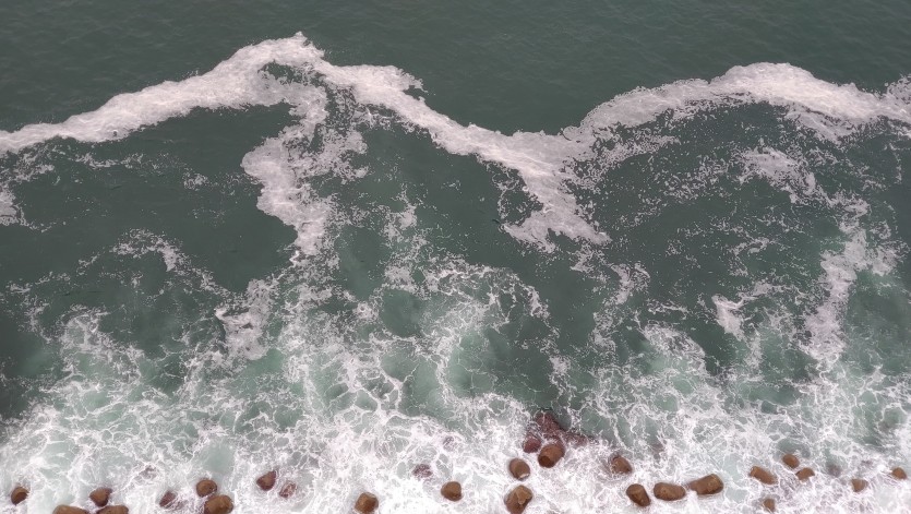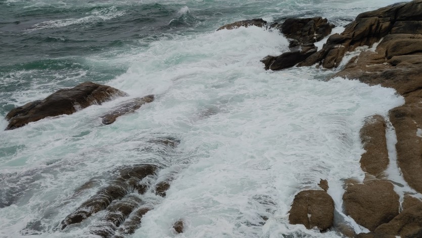 파도가 포말을 일으키며 부서지는 모습을 관하며