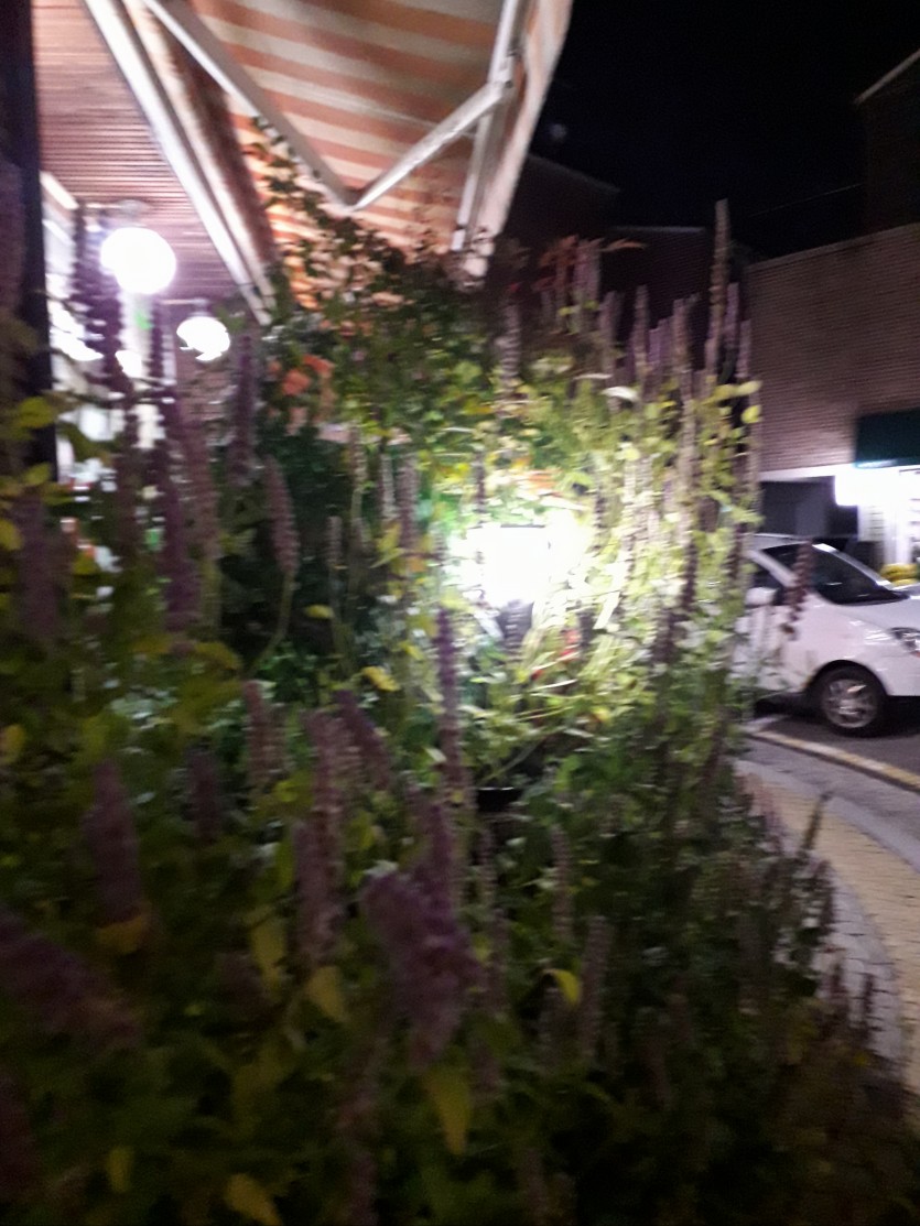 옛뜰칼국수 가게앞에 아름다운 꽃과