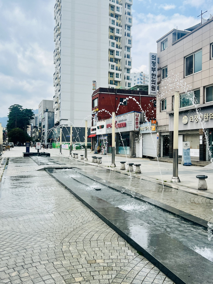 지나다니는 사람들의 더위를 식혀주고 때로는 사람들이 쉬어갈 수 있는 공간을 제공하는 분수를 보며 가슴 속에 중심이 잡힌 상태에서는 그 어떤 고난 속에서도 미락행 일불보살도를 나툴 수 있구나하는 생각이 들며 동시에 스스로의 마음의 중심을 다잡는 시간을 가질 수 있었습니다.