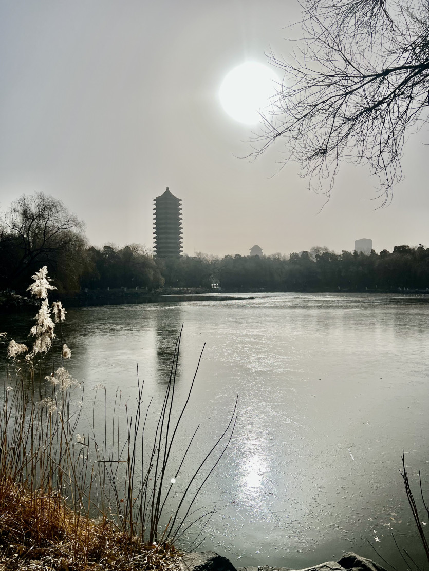 학교 안에 미명호(未名湖)라고 하는 호수를 보며 자기작품 관수행하였습니다.