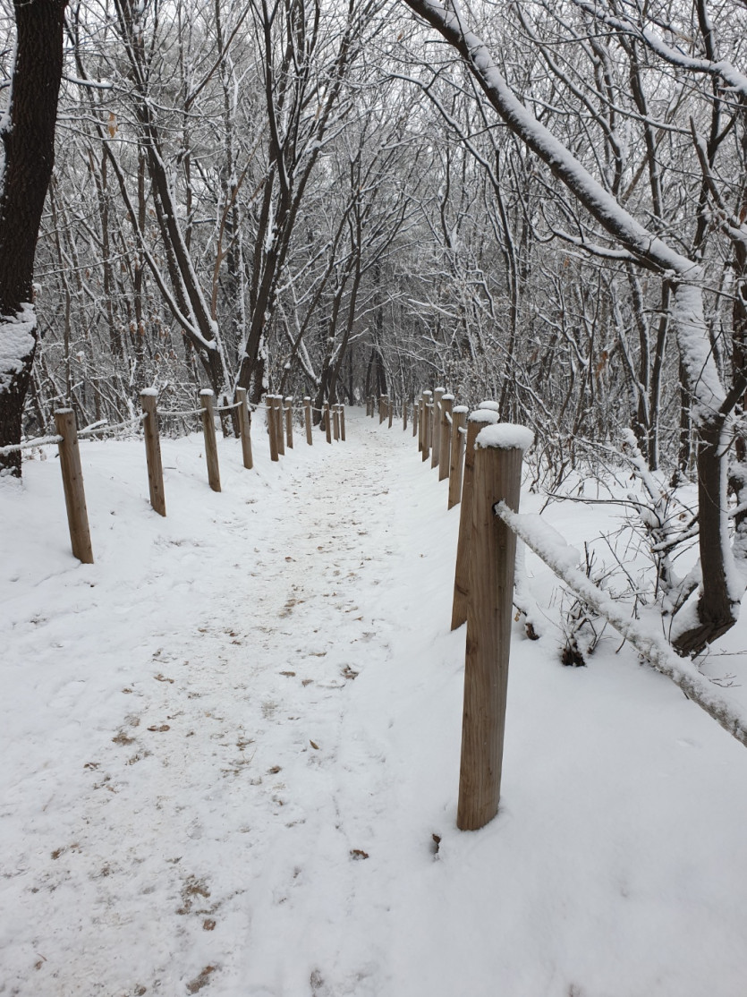 지난 연말 폭설 수준으로 눈이 많이 온 날 집에서 가까운 광교산에